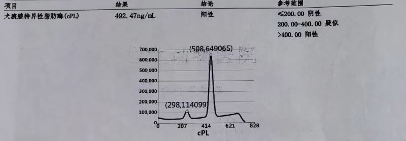 Wynik diagnostyczny: Pozytywny dla psiej lipazy trzustkowej (cPL)